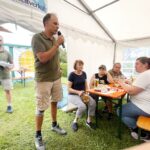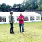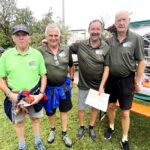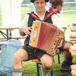 Fotos: Hötzelsperger – Eindrücke vom bayerisch-tirolerischen Hufeisenturnier in Prien-Kaltenbach – 1. Siegermannschaft von links: Hans Leitner, Matthias Riedmann, Josef Riedmann und Adi Streif (85 Jahre). 2. Vorstand Josef Freund (li.) und Manfred Zott bei der Siegerehrung 3. Paul Bertl, Musikant aus Bergen. 3. Ehrenvorstand Peter Freund (re.) mit Baron Ludwig von Cramer-Klett auf dem Turnierplatz vor dem kleinen Festzelt.