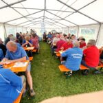 Hufeisenvorstand Josef Freund freute sich bei seiner Begrüßung, dass trotz unsicherer Wetterlage so großer Zuspruch seitens der Leute mit dem Glücksbringer-Eisen herrschte. Sein besonderer Dank galt den vielen ehrenamtlichen Helfern des Hufeisenvereins, der Bauersfamilie Steindlmüller für die stete Platzpflege und für die Gewährung der Parkplätze, Vereinsmitglied Richard Grosse für die Grillwaren sowie Aussendienstbetreuer Rudi Lutz vom Hofbräuhaus Traunstein für die Getränke-Lieferung. Ein besonderer Willkommensgruß galt Baron Ludwig von Cramer-Klett. Als dieser vom Hufeisenwettbewerb hörte, wollte er sich ein Bild von der ihm bislang unbekannten Sportart machen. Ehrenvorsitzender Peter Freund erläuterte dem Baron die Turnier-Gepflogenheiten ehe dann Manfred Zott für den Hufeisenverein die Siegerehrung vornahm. Für jeden Teilnehmer gab es zum Dank für das Mitmachen und auch für das Duchhalten trotz kurzzeitiger Regenschauer Wurst- und Fleischpreise zur Auswahl. Folgende Ergebnisse konnten bekanntgegeben werden: Gruppe A: Kelchsau Erharter vor Kaltenbach I, HC Morast, Tüssling, Söchtenau II, Grüntal, Niederndorfer Berg, Eggstätt und Bad Aibling. Gruppe B: Kelchsau Riedmann vor Kirchdorf, Kössen, Erl-Bubenau, Schnaitsee, Söchtenau I, Kolbing, Nussdorf und Kaltenbach II. Für die musikalische Gestaltung der Siegesfeier sorgte Ziachspieler Paul Bertl aus Bergen. Auch in den kommenden Wochen werden diesseits und jenseits der bayerisch-tirolerischen Grenze wieder Freundschaftsturniere durchgeführt.