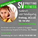 Mit professionellen Trainern kommen sie nach Prutting und machen einen Selbstverteidigungskurs zur Stärkung des Selbstbewusstseins. Bitte denkt daran passende Sportbekleidung und eine kleine Brotzeit und was zu Trinken für die Pause mitzubringen.
