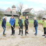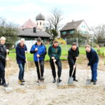 Bericht und Bilder: Heinrich Rehberg – Erster Spatenstich für den Neubau der gemeinsamen Kindertagesstätte der Gemeinde Frasdorf und der Marktgemeinde Prien in Wildenwart (von links) Martin Karl, Landschaftsarchitekt vom Büro Grünwerk Landschaftsarchitekten aus Bad Aibling – Olaf Hoffmeyer, Bauamtsleiter Gemeinde Frasdorf – Thomas Bachmann, Ingenieurbüro Höllige-Wind aus Anger – Svenja Rohde, Architektin vom Planungsbüro Firmhofer + Günther Architekten aus München – Bürgermeister Daniel Mair, Gemeinde Frasdorf – Bürgermeister Andreas Friedrich, Marktgemeinde Prien, Rosi Hell, Gemeinderätin Prien