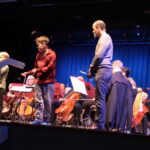 Musik, die wie Wasser klingt? Mit dieser Frage wurden die Kinder auf eine Reise in, über und durch das Element ‚Wasser‘ geführt – und das geschah so: Ein phantasiebegabter Sohn (pfiffig und souverän gespielt von Leo Hofmann), der in ‚Wassermusiken‘ voller Freude das Tönen der Quellen, der Wellen, des Meeres oder des Regens vernimmt, möchte seinen wenig hörsensiblen Vater von der Ausdruckskraft der Musik überzeugen. Werner Hofmann, der auch das Szenario des Stückes entworfen hatte, brachte all seinen bodenständigen Charme auf, um sich als „schwieriger Fall“ zu erweisen. Daher bat Leo das Orchester (mit Christine Böhm, seinem 1. Vorstand), dem sturen Vater einen tönenden Beweis zu liefern. Doch das gelang nur langsam. Nach Händels „Wassermusik“ und Schuberts „Forellenquintett“ spürte der Vater nichts, obwohl Leo spontan die Unterstützung des neunjährigen Toni Härtel erhielt, der mutig und hinreißend die Melodie auf der Geige anspielte! Auch Smetanas „Moldau“ und Dvořáks gruseliges Stück vom „Wassermann“ ließen den Vater noch ungerührt. Erst als Toni Härtl – nun auf der Trompete! –  eine Beethoven-Melodie und das Orchester den Satz ‚Gewitter, Sturm‘ aus Beethovens „Pastorale“ anstimmte, gingen dem Vater die Ohren auf – Leo hatte die Wette gewonnen. Mit Mendelssohns „Meeresstille“ kam dann Ruhe auf, bevor die „Petersburger Schlittenfahrt“ mit ‚gefrorenem Wasser‘ das Konzert beschloss, begleitet von einem schwungvollen Hör- und Bewegungsspiel des begeisterten Publikums.