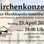 „Himmlische Klangvariationen“ – unter diesem Motto lädt die Musikkapelle Samerberg am Sonntag, 23. April 2023 zu einem Kirchenkonzert in die Pfarrkirche Maria Himmelfahrt in Törwang ein. Beginn ist um 18:00 Uhr.