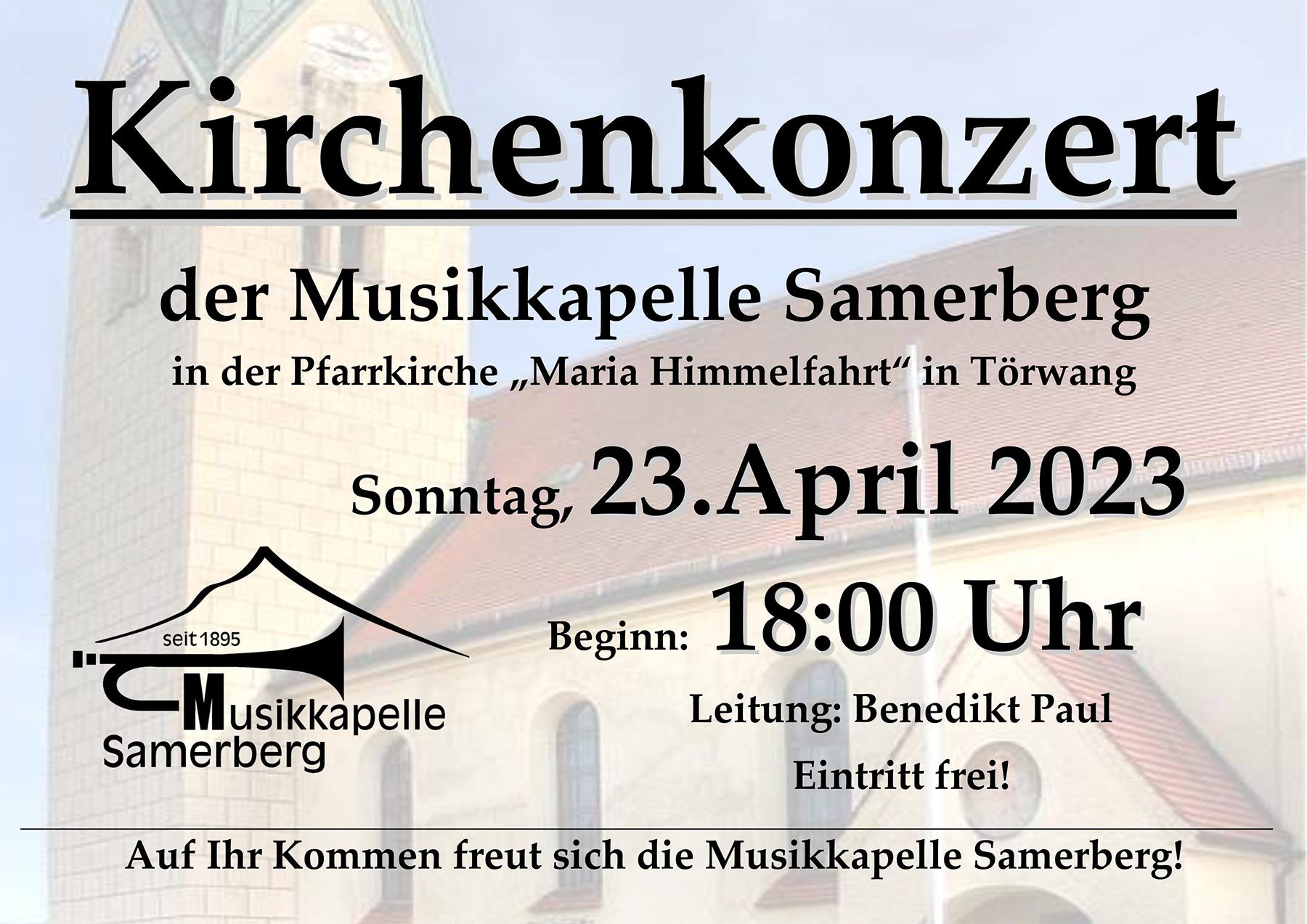 „Himmlische Klangvariationen“ – unter diesem Motto lädt die Musikkapelle Samerberg am Sonntag, 23. April 2023 zu einem Kirchenkonzert in die Pfarrkirche Maria Himmelfahrt in Törwang ein. Beginn ist um 18:00 Uhr.