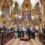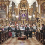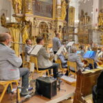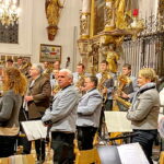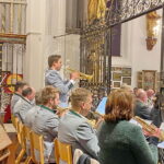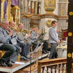 Mit der Promenade aus „Bilder einer Ausstellung“ von Modest Mussorgskij wurden die Kirchenkonzerte eröffnet. Roland Merk übernahm auch die Moderation selbst und verlas eingangs aus seinem „Taschenbuch für Kirchenmusik“, dass in der Kirche bei Gefallen der Darbietungen Applaus erwünscht sei. Bei der „Vallerius Intrada“ von Jan de Haan überraschten die Trompeten und Posaunen von der Empore aus. Als weitere Stücke folgten „Die Himmer rühmen“ von Ludwig von Beethoven, „Wo ich auch stehe“ von Albert Frey und die Fantasie „Festivo“ von Dr. Michael Stacheter. Komponist Stacheter spielte selber bei den Konzerten wie schon seit vielen Jahren am Kontrabass mit.