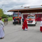 Nach dem Gottesdienst formierte sich ein kleiner Festzug zum Feuerwehrhaus, wo unter dem Beisein der Gemeindestellvertreter Christoph Heibler und Christine Eckert der neue Mannschaftsbus der Freiwilligen Feuerwehr Roßholzen-Steinkirchen gesegnet wurde. Kommandant Andreas Huber sprach einige Dankesworte an die versammelten Kameraden und bedankte sich bei der Gemeinde für die Unterstützung. Zum Abschluß spielte die Kirchenmusi noch einige unterhaltsame Stückeln zu den Getränken aus´m Flaschl und den selbstmitgebrachten Kirtanudeln.