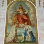 Foto/s: Hötzelsperger – Einzug des Altardienstes beim Fest „Christkönig“, die Kirche Wildenwart und das Altarbild mit dem irdischen Königspaar Ludwig III. und Königin Marie Therese sowie mit dem wahren König Jesus Christus.