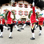 Im Bergsteigerdorf Sachrang wurde im Ortskern getanzt: Die Kirchheimer Schäfflertanzgruppe war auf Einladung der Gemeinde und der Tourist Info erneut nach sieben Jahren wieder zu Gast. Zahlreiche Bürger und Gäste waren im Ortskern mit dabei, um diesen traditionsreichen Tanz anzuschauen