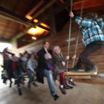BHM_Kirtahutschn.jpg: Ein beliebtes Vergnügen ist das gemeinsame „Kirtahutschn“ im Holzmannhof. © Bezirk Oberbayern, Archiv BHM Amerang (G. Nixdorf).