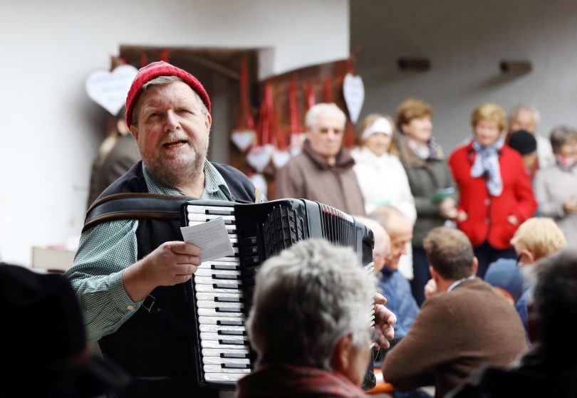 Bildunterschrift: Mit viel Herzblut singt und musiziert der Volksmusikpfleger des Landkreises Rosenheim am Kirchweihmontag im Bauernhausmuseum Amerang