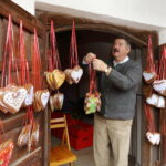 BHM_Kirchweih_003.jpg: Für jeden das passende Herzerl: Die Lebkuchen sind ein beliebtes Souvenir. © Bezirk Oberbayern, Archiv Bauernhausmuseum Amerang, Aufnahme: Gerhard Nixdorf.