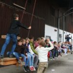 Kirtahutschn – ein himmlisches Vergnügen. Der Trachtenverein Niederaschau lud in Aschau zum Hutschn ein, die Kleinen lassen es noch ein bisschen vorsichtig angehen, die Großen fliegen mit der Kirtahutsch direkt in den Himmel. Die Gaudi ist riesengroß bei dem wilden Ritt – muss man sich doch beim Vordermann gut festhalten. Die Kirtahutsch ist einmaliges Vergnügen und das gibt’s nur ein einziges Mal im Jahr. Ein paar lange Ketten, ein dicker Laden unter dem Scheunenvordach und darauf ein Haufen Kinder – fertig ist das Vergnügen. Aber auch die Erwachsenen hatten ihren Spaß. Schulkinder, junge und junggebliebene Leute freuten sich schon seit langem auf dieses kostenlose Vergnügen am Kirchweihsonntag. Auf dem Daurer-Hof in Haindorf trafen sich die Aschauer Kindergartenkinder, die Schulkinder und die Nachbarn und wer sonst noch alles aus der Umgebung zum Hutschn; es gab die kulinarischen Spezialitäten der Kirchweih, Auszogene, Krapfen, Kirtanudeln und ein Haferl Kaffee dazu, zur Unterhaltung spielte die Musi auf, was will man da noch mehr.