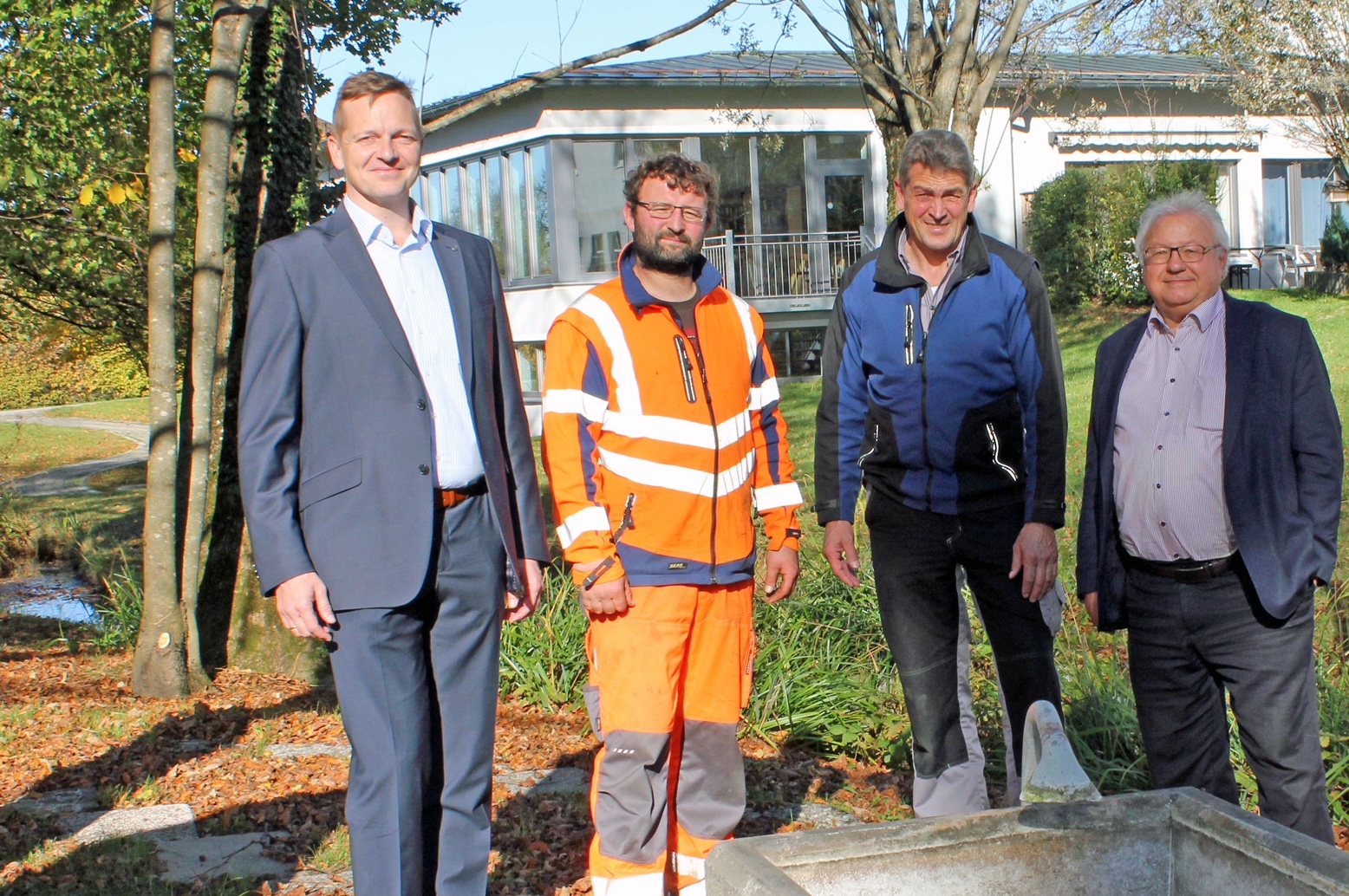 Bürgermeister Simon Frank, Andreas Aringer und Bauhofleiter Rudi Angermeier, sowie der Vorsitzende des Kneippvereins Aschau Dr. Klaus Piwernetz (von links)