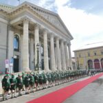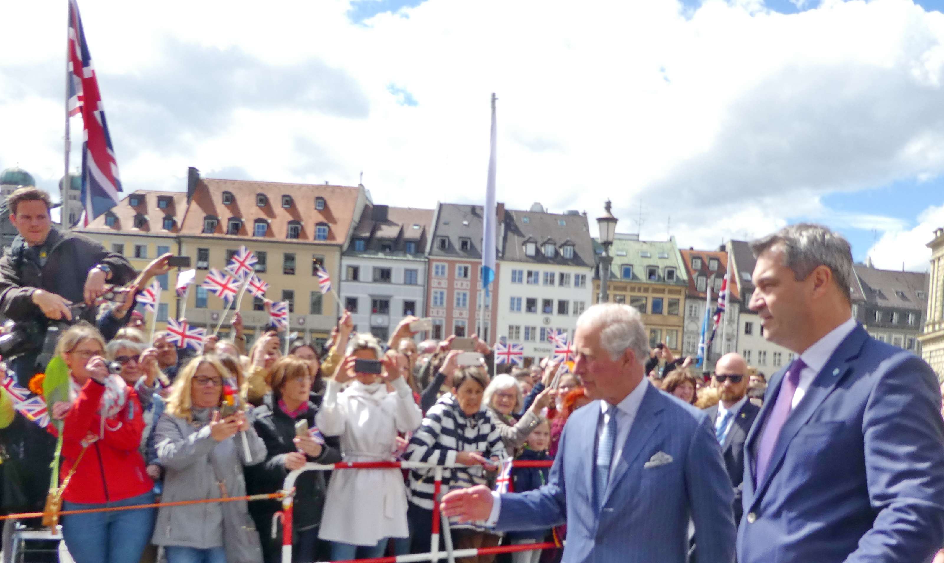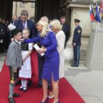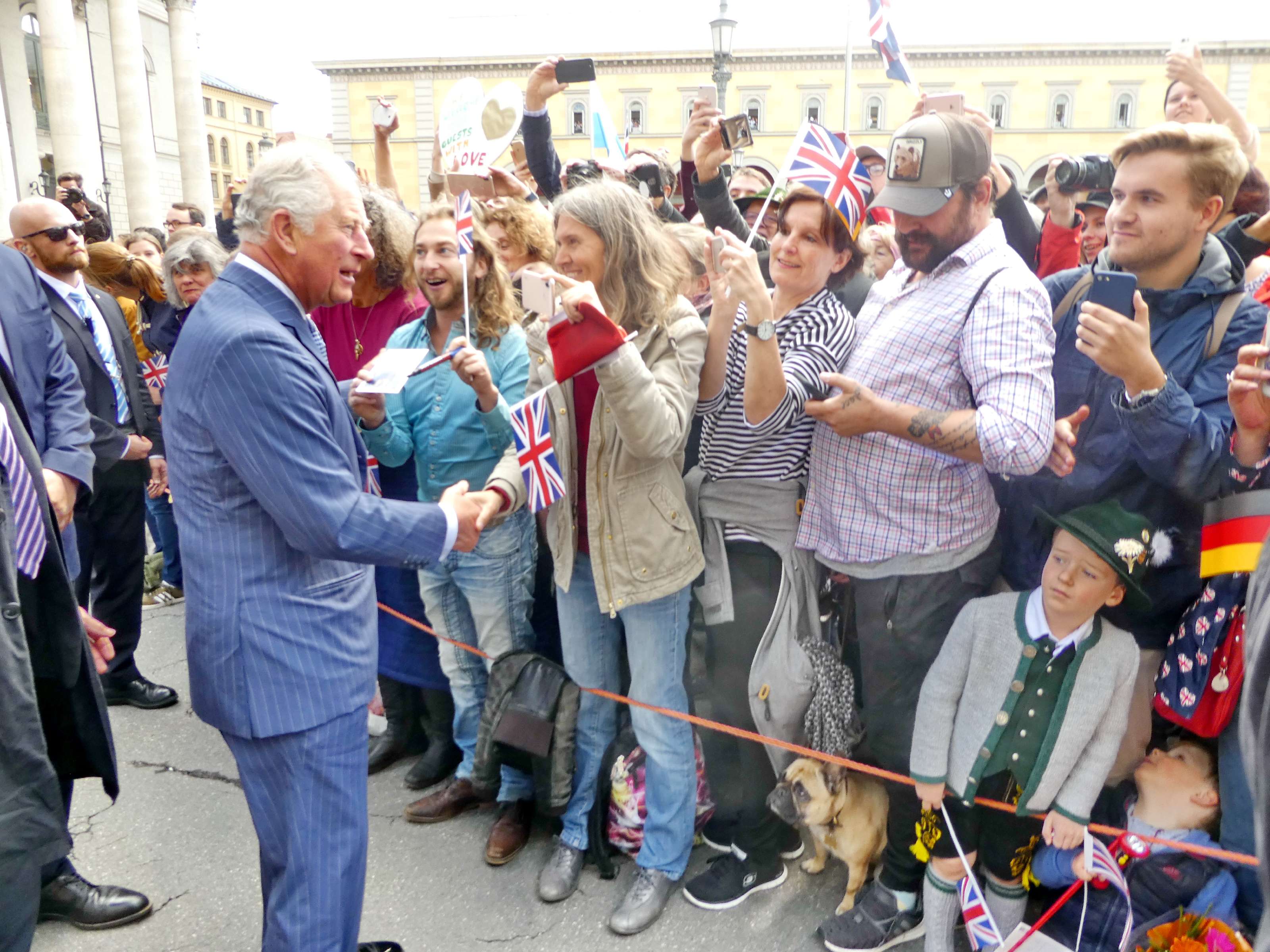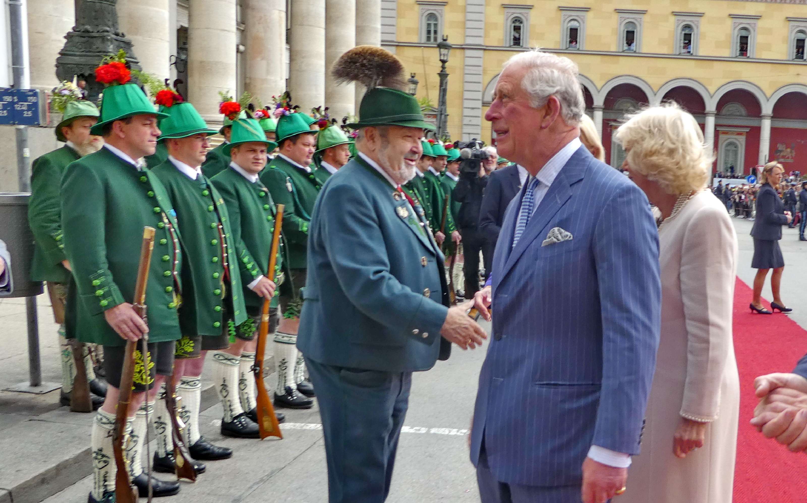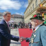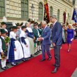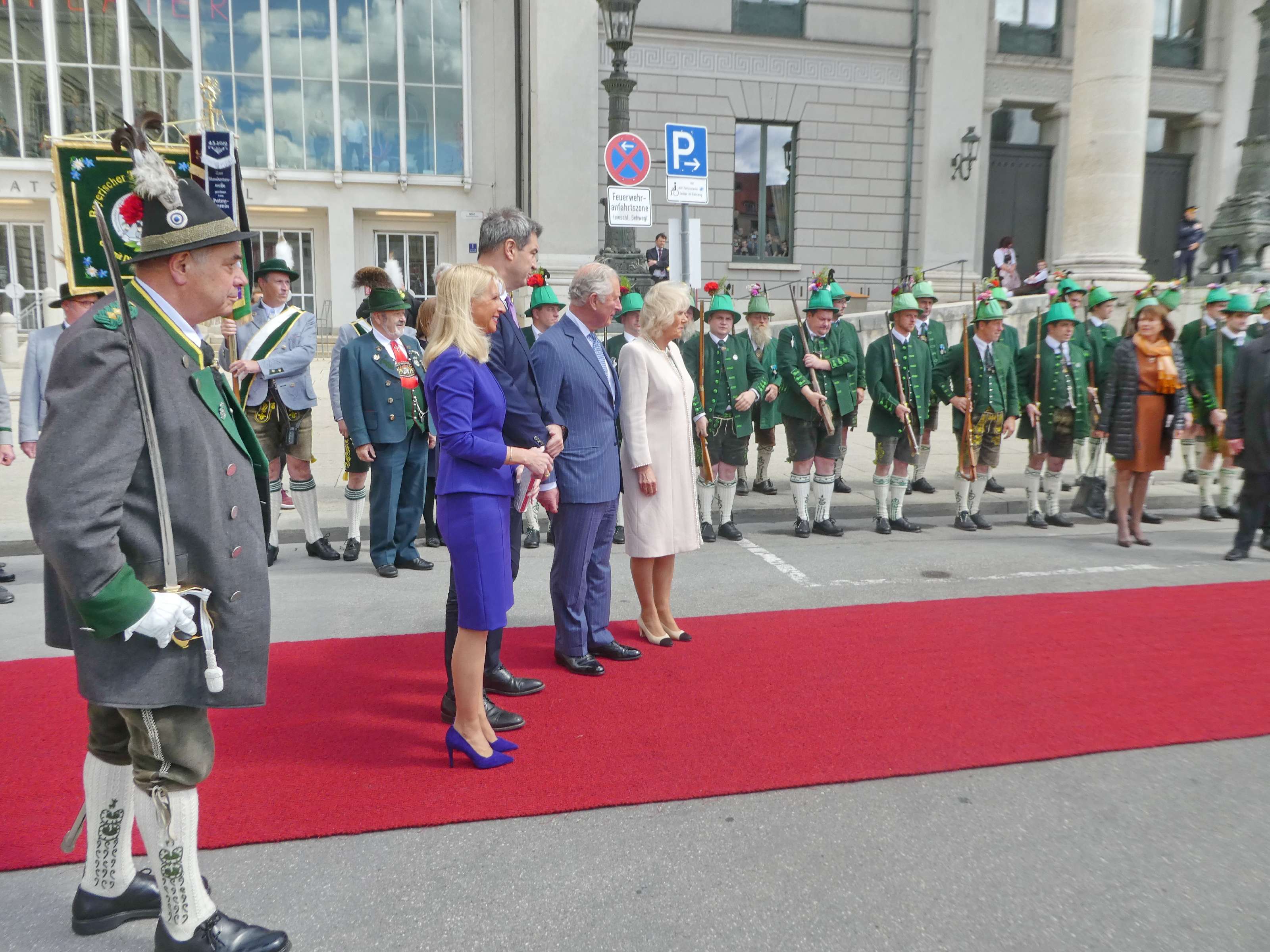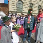 Emmeringer Trachtenkinder und Prinz Charles in München – München/Emmering – Ein großer Tag war der Empfang der Bayerischen Staatsregierung für den britischen Thronfolger Prinz Charles und seiner Ehefrau Camilla in München für zwei kleine Trachtler aus Oberbayern. Magdalena Lechner und Georg Renner, beide 11 Jahre alt und beide vom Trachtenverein „Almarausch“ Emmering im Landkreis Ebersberg hatten die Ehre, den hohen Gästen aus England einen weiß-blauen Blumenstrauß namens des Bayerischen Trachtenverbandes zu überreichen. Rund 175 Trachtlerinnen und Trachtler aus den Reihen des Trachtenverbandes und ebenso viele Bayerische Gebirgsschützen präsentierten sich bei weiß-blauem Himmel und in Gegenwart zahlreicher Münchner Zuschauer auf dem Platz vor der Münchner Residenz. Georg und Magdalena waren dabei die Jüngsten. Sichtlich waren sie erfreut und etwas aufgeregt, als Bayerns Ministerpräsident Dr. Markus Söder mit seiner Gattin Karin mit dem royalen Besuch aus England auf sie zukam. „Die Übergabe der Blumen und den höflichen Knicks haben wir vorher ausgemacht“, so Magdalena, die sich ebenso wie ihr Bua über das einzigartige Erlebnis freute. Bei Interviews mit verschiedenen Fernsehsendern sagte Georg auf die Frage, ob er sich Prinz Charles so vorgestellt hat, knapp aber klar: „Ja, genauso wie in der Zeitung!“. Als der ganze Trubel vorbei war, ging es noch zu einer Brotzeit ins Hofbräuhaus. Damit endete ein ganz und gar besonderer, noch dazu schulfreier Tag für das freundliche Trachtenpaar aus den Reihen des Bayerischen Inngau-Trachtenverbandes, das für den Bayerischen Trachtenverband royale Hände schütteln durfte.
