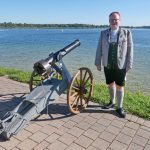 Der Festrede folgte der „König-Ludwig-II-Marsch“ der Priener Blaskapelle im Beisein der Fahnenabordnungen der Priener Traditionsvereine (Königlich-Privilegierte Feuerschützengesellschaft, Gebirgsschützenkompanie sowie Trachtenvereine Atzing und Prien). Hauptmann Rudi Holthausen von den Priener Gebirgsschützen war schon oft in früheren Jahren dabei, sein Resümee war: „Zu Zeiten von Bürgermeister Lorenz Kollmannsberger und Kurdirektor Peter Donauer war alle Jahre eine große König-Ludwig-Feier, mit dabei waren damals auch die Königstreuen und Freunde von Herrenchiemsee mit Dr. Franz Zech sowie der König-Ludwig-Club von München mit dessen Präsidenten Dr. Hannes Heindl, es wäre zu überlegen, ob mit einem regelmäßigen Ryhthmus, zum Beispiel alle fünf Jahre diese ehrwürdige Tradition wieder fest im Priener Gesellschaftsleben verankert werden könnte“. Ehe die Feier mit der Bayernhymne (die 3. Strophe beginnt im übrigen mit: „Gott mit ihm, dem Bayernkönig, Segen über sein Geschlecht. Denn mit seinem Volk in Frieden wahrt er dessen heilig Recht.) erschallten noch Salut- und Kanonenschüsse. „Normal war es zu Königszeiten üblich, dass für den Monarchen 21 mal geschossen wurde“ – so Michael Feßler, der mit seinem Sohn Martin mit einer im Familienbesitz befindlichen und aus einer Rosenheimer Kanonenfabrik stammenden Uralt-Kanone („Sie war schon 1926  dabei, als das Schiff Ludwig Feßler Stapellauf hatte“)  dreimal schoss, für drei weitere Kanonenschüsse sorgte Erwin Nischbach vom gemeindlichen Bauhof mit einer Vorderlader-Kanone. Zudem ließ sich die Königlich Privilegierte Feuerschützengesellschaft von Prien lautstark und dreifach hören. Aufgrund der schönen Witterung und der derzeit guten Belegung der Tourismusorte rund um den Chiemsee fanden sich doch einige Besucher ein, diese waren hoch erfreut über die kleine, aber würdige Feier zum 175. Geburtstag von König Ludwig II.