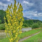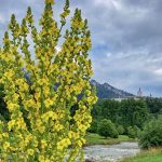 Das mit Regenwolken verhangene Priental und das mächtige Schloss Hohenaschau geben ausnahmsweise mal ein tristes Bild ab. Strahlender Blickfang hingegen ist diese Königskerze. Von jeher faszinierte diese Pflanze schon unsere Vorfahren, ob als Wetterorakel, Heilpflanze oder als Blitzableiter. Wohl wegen ihrer beachtlichen Größe und auch dass sie kerzengerade in den Himmel ragt. Doch das Beste dabei ist, die Höhe der Königskerze besagt im Volksmund, dass so Hoch die Schneehöhe im kommenden Winter werden soll. Na dann ist zumindest wie hier in Aschau i.Chiemgau einiges zu erwarten. Doch sei es drum, jetzt heißt es erst mal den Sommer und die Blütenpracht genießen.