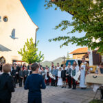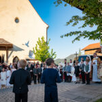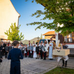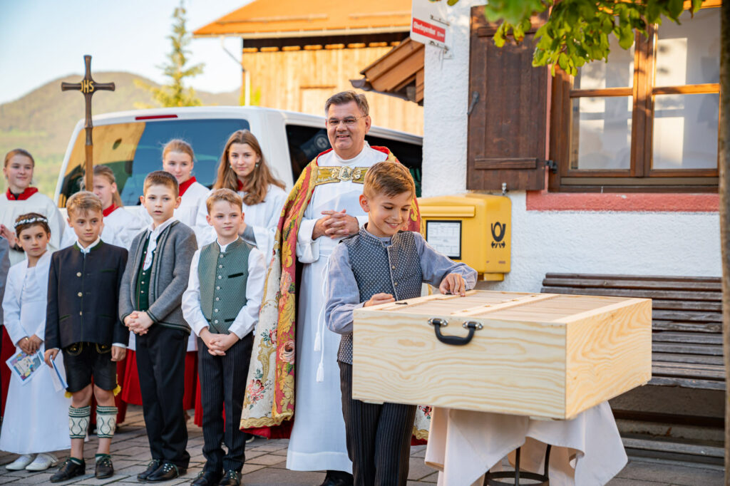 Die Abend-Andacht mit Diakon Schmitzberger fand um 19 Uhr ebenfalls in der Törwanger Kirche unter der musikalischen Leitung von Hans Wiesholzer, Anna und Lena Pfisterer sowie Ronja Stuffer statt. Ein besonderer Moment war der Abschluss der Dankandacht auf dem Dorfplatz. 24 weiße Tauben stiegen für jedes Kommunions-Kind in den Himmel empor. Besonders Gedacht wurde mit dieser rührenden Geste an Veronika Daxelberger, die verstorbene Mutter vom Xaver Ascher, eines der Erstkommunionkinder.