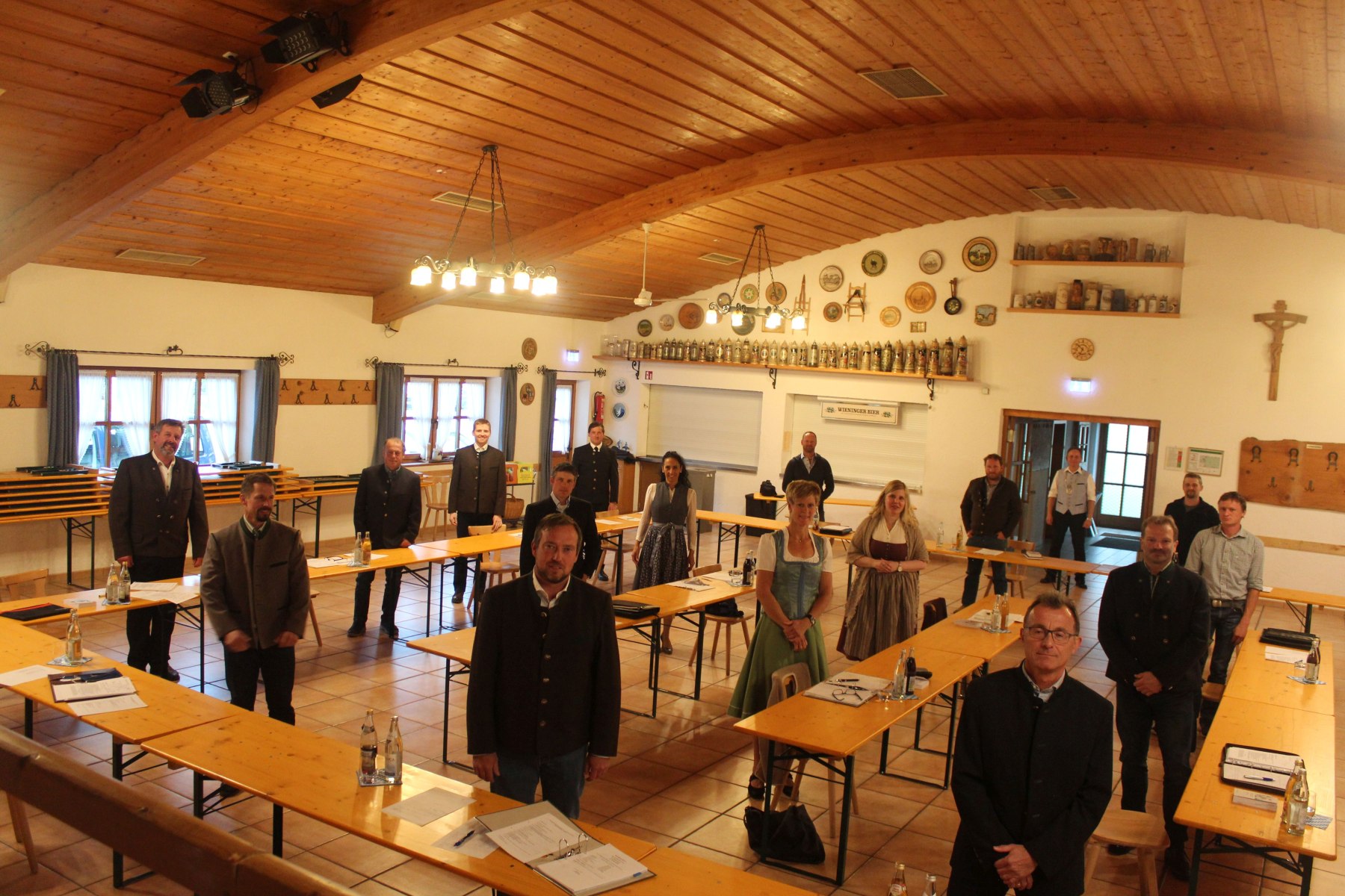Bürgermeister Daniel Mair (hinten unter der Türe) mit dem gesamten Frasdorfer Gemeinderat.