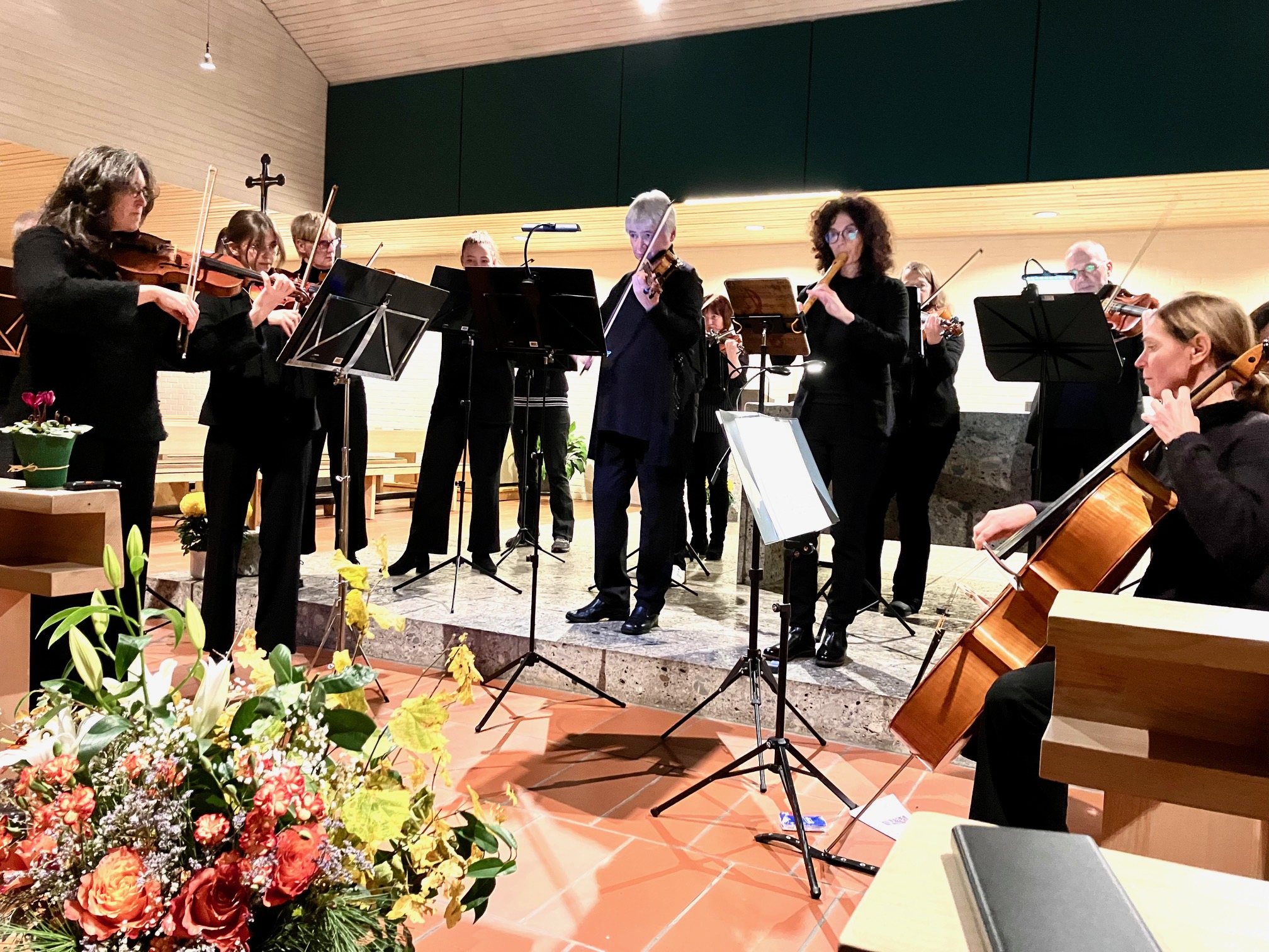 Ohne Dirigent beweist das Kammerorchester Corona ein gutes Gespür für ein harmonisches Zusammenspiel, hier beim 4. Brandenburgischen Konzert mit Blockflötistin Dr. Cornelia Fischer-Hüttl (rechts) und Hildegard Ruf, eingerahmt von Konzertmeisterin Annegret Schramm (links) und Monika Gaggia am Cello.