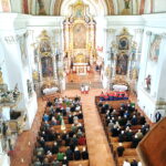 Das anspruchsvolle Werk für vierstimmigen Chor, Soli, Orgel und Orchester erklang in der wunderschönen Barockkirche mit bester Akustik voll und schön. Alle Mitwirkenden standen ganz oben auf der zweiten Empore sehr beengt hinter der Orgel, von unten kaum zu sehen, zu hören umso besser.