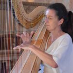 Schon bei dem ersten Stück von dem belgischen Komponisten Hasselmans „La Source“ (die Quelle), konnten sich die Zuhörer bei den ersten Tönen der Harfe mit geschlossenen Augen gut vorstellen, wie es im Wald zu einer munter sprudelnden Quelle geht, was bei den tropischen Temperaturen im Sommer sehr angenehm ist. Der erste Beweis, wie passend ein Harfenspiel im Sommer sein kann, viele weitere Beispiele folgten.