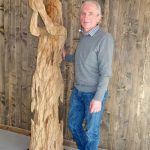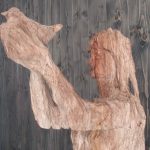 Zur Aufstellung des Menschen, der in seinen Händen eine Taube festhält, konnten Vorstand Stefan Scheck und Hospizleiterin Ruth Wiedemann auch Fördervereinsvorsitzenden Alois Glück, Landrat a. D. Georg Grabner aus dem Berchtesgadener Land sowie Walter Richter als Schatzmeister des für die Anschaffung aktiv gewordenen Fördervereins willkommen heißen.  Das Chiemseehospiz wird getragen von den Landkreisen Rosenheim, Traunstein, Berchtesgadener Land und der Stadt Rosenheim in Zusammenarbeit mit den dort ansässigen Hospizvereinen. Wie Andreas Kuhnlein bei der Vorstellung seines Werkes informierte, hat er sein Kunstwerk mit der Motorsäge bearbeitet und wie immer Wert daraufgelegt, dass der verwendete Eichen-Stamm aus Sturmschäden entnommen worden ist. Die Skulptur „Mensch mit Taube“ soll Vertrauen und Freiheit vermitteln, darüberhinaus – so Andreas Kuhnlein: „Mit dem Werk sollen drei Dinge des menschlichen Daseins zum Ausdruck kommen: seine Brutalität gegenüber der Natur, seine Verletzlichkeit und Sensibilität und seine Vergänglichkeit“. Landrat a. D. Georg Grabner zeigte sich überaus angetan bei der Betrachtung und sagte: „Ich bin immer wieder fasziniert von der Art der Kunst von Andreas Kuhnlein und ich frage mich, wo er immer wieder seine Kraft und Inspirationen herholt“.  Alois Glück, langjähriger Landtagspräsident, bezeichnete das Kunstwerk als stimmig, das Obhut und Loslassen vermittelt.