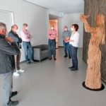 Fotos: Hötzelsperger – Eindrücke von der Übergabe der Skulptur von Andreas Kuhnlein an die Chiemseehospiz in Bernau – 1. Andreas Kuhlein mit der Skulptur – 2. Von links: Vorstand Andreas Scheck – Hospizleiterin Ruth Wiedemann und Fördervereins-Vorsitzender Alois Glück. 3. Von links: Alois Glück, Stefan Scheck, Ruth Wiedemann und Andreas Kuhnlein mit Skulptur.