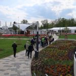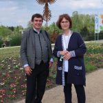 Erster Anlaufpunkt der Medienexkursion war die Landesgartenschau in Beelitz. Die beiden Geschäftsführer der Gartenschau, Marina Ringel und Bernhard Knuth, Beelitzer Bürgermeister, empfingen die Gäste vor einem farbenprächtigen Blumenbeet am Eingang. Sie gaben einen Überblick über das, was dem Besucher auf der Gartenschau erwartet. Es ist ein „Gartenfest für alle Sinne“, so der Bürgermeister. Neben den gärtnerischen Themenbereichen, wie farbenprächtige Blumenbeete, Feuchtbiotope, Staudenanlagen, Mustergärten, Andachtsgarten, Blumenhallenschau, etc. wird auf der Freilichtbühne auch viel Kultur geboten. Daneben bietet die Spargelstadt Beelitz auch vielerlei künstlerische und kulinarische Genüsse. Denn das Leitmotiv der Landesgartenschau Beelitz ist die Kulinarik. So ist auch vieles rund, den Tellern ähnlich, gestaltet, erklärte Frau Ringel. Insbesondere faszinieren die runden Blumenbeete den Besucher.