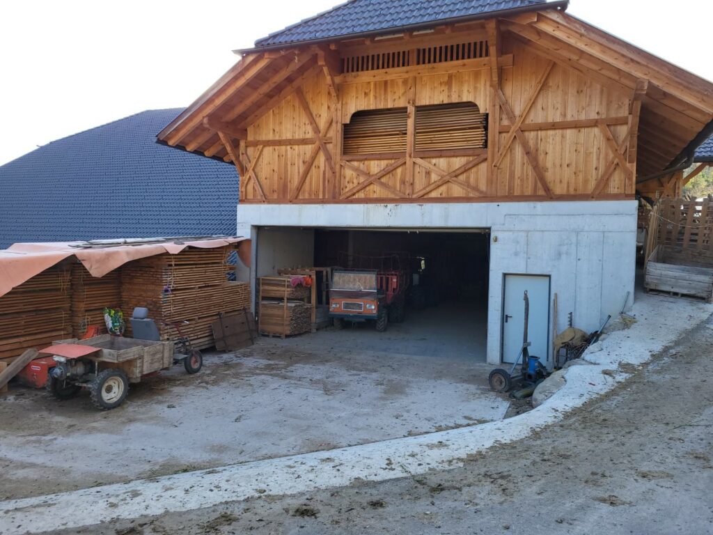 Nächste Station war der Stafflerhof in Siffian, einst einer der bedeutendsten Lehenshöfe des Klosters Frauenwörth. Auf über 1000 Metern Höhe gelegen, bietet er einen grandiosen Blick über das Schlernmassiv. Die heutige Besitzerfamilie Goss bewirtschaftet den Hof mit sichtbarer Hingabe und großer Sorgfalt – vom Weinbau über Getreideanbau und eigene Mühle bis hin zur Mutterkuhhaltung. Herr Goss nahm sich viel Zeit für die Besucher, beantwortete geduldig alle Fragen und vermittelte eindrucksvoll, wie nachhaltig und vielseitig Landwirtschaft in dieser Höhenlage betrieben werden kann. Zum Abschied wurde er von der Gruppe herzlich auf die Fraueninsel eingeladen – als Zeichen der Verbundenheit zwischen den beiden historischen Orten.