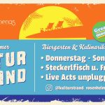Auch in diesem Jahr findet in Rosenheim der Kulturstrand am Innspitz zwischen Inn und Mangfall statt – mit Biergarten, Foodtrucks und vielen Live-Auftritten. Öffnungszeiten sind zwischen 11. und 21. August immer donnerstags bis samstags von 12 bis 22 Uhr, sonntags von 10 bis 16 Uhr.