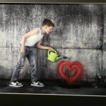 In der Ausstellung sind nur die zwei Fotos mit den Jungen reine Fotografien. Das Motiv sei angelehnt an Banksy, sagte sie. Sie habe es “in Fotografie übersetzt“.