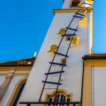 Im Rahmen des Festgottesdienstes mit dem Kirchenchor und Orchester wird am Freitag um 19:00 Uhr die Kunstinstallation „Himmelsleiter“ am Nordturm der Kirche enthüllt und erstmals beleuchtet.