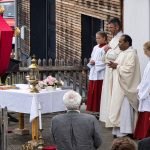 In seiner Predigt ging Pater Banda auf das Haus Gottes als den Mittelpunkt des Ortes, aber auch unseres Lebens ein. „Wir alle sind lebendige Steine der Kirche und sind dankbar den vielen Generationen vor uns, die nicht nur die Kirche erhalten, sondern uns den Glauben weitergegeben haben bis in unsere Zeit. Eine farbige, lebendige Gemeinde feiert ihr Fest, feiert „ihre“ Kirche.“