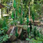 Aus gebrauchten Flaschen hat die Künstlerin Alexandra Gehr aus Deuerling im Schmelzverfahren neue Objekte geformt. Ihr Werk heißt „Sporophyten“. Jedes ist für sich individuell und einzigartig. Aus der vom Menschen gegebenen technischen Form wird eine organische. Die Objekte sind wie übergroße Sporophyten auf Metallstäben arrangiert. Das Metall entwickelt im Laufe der Zeit Rost, was jedoch erwünscht ist. Die Künstlerin erklärt, der Mensch greift unvermeidbar in die Natur ein. Selbst eine rücksichtsvolle Gartengestaltung verändert den natürlichen Bewuchs und die organischen Prozesse von Werden und Vergehen. Dennoch und gerade deswegen kann die Kunst dabei helfen, Wertschätzung für die Wunder der Natur zu entwickeln, damit auch bestehende Ökosysteme respektiert und erhalten werden.