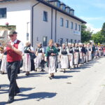 Begonnen hatte der Tag mit einem Gottesdienst in der Teisendorfer Pfarrkirche St. Andreas, den Pfarrer Martin Klein zelebrierte und den der  Landfrauenchor Berchtesgadener Land unter der Leitung von Anja Warislohner mit geistlichen Liedern und Instrumentalstücken gespielt von Anja Warislohner (Geige) und Elisabeth Hogger (Gitarre) gestaltete. In das zum Schluss des Gottesdienstes gesungene  Irische Segenslied stimmte die ganze Kirche mit ein. „Vergelts Euch Gott, es war ein Hochgenuß!“, mit diesen Worten bedankte sich Pfarrer Martin Klein beim Chor und wünschte allen Teilnehmerinnen des Chöretreffens einen wunderschönen Tag in Teisendorf. Danach ging es bei strahlendem Sonnenschein unter den Klängen der Musikkapelle Teisendorf im Zug durch die Markt- und Poststraße zum Poststall. Zahlreiche Schaulustige säumten die Straßen.