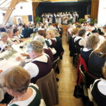 Nach dem gemeinsamen Mittagessen, an dessen Beginn ein von dem Landfrauenchor Berchtesgadener Land gesungenes Tischgebet stand, trug jeder der acht Chöre  drei Lieder vor.  Durch das Programm führte Elisabeth Mayerhofer  mit kurzen Hinweisen zum Chor und den Liedern im Programm. Gesungen wurden überwiegend  Volkslieder aus Oberbayern und Österreich darunter Almlieder, Heimatlieder, Tanzlieder, Liebeslieder  aber auch ein  klassisches Stück aus dem Oratorium „Elias“ von Felix Mendelsohn-Bartholdy  sowie bekanntes Liedgut von  Liedermacher der Gegenwart wie Christian Dreo oder Kathi Stimmer-Salzeder. Die acht Chöre sind  zwischen 1975 und 2007 gegründet worden, wusste Mayerhofer,  und haben derzeit zwischen zwanzig und dreißig Sängerinnen. Alle acht Chöre werden von Frauen geleitet. Die Freude am Singen, die Ernsthaftigkeit und hohe Qualität des Vortrags waren bei allen Teilnehmerinnen spürbar. Das Publikum belohnte die Liedvorträge mit viel Applaus.
