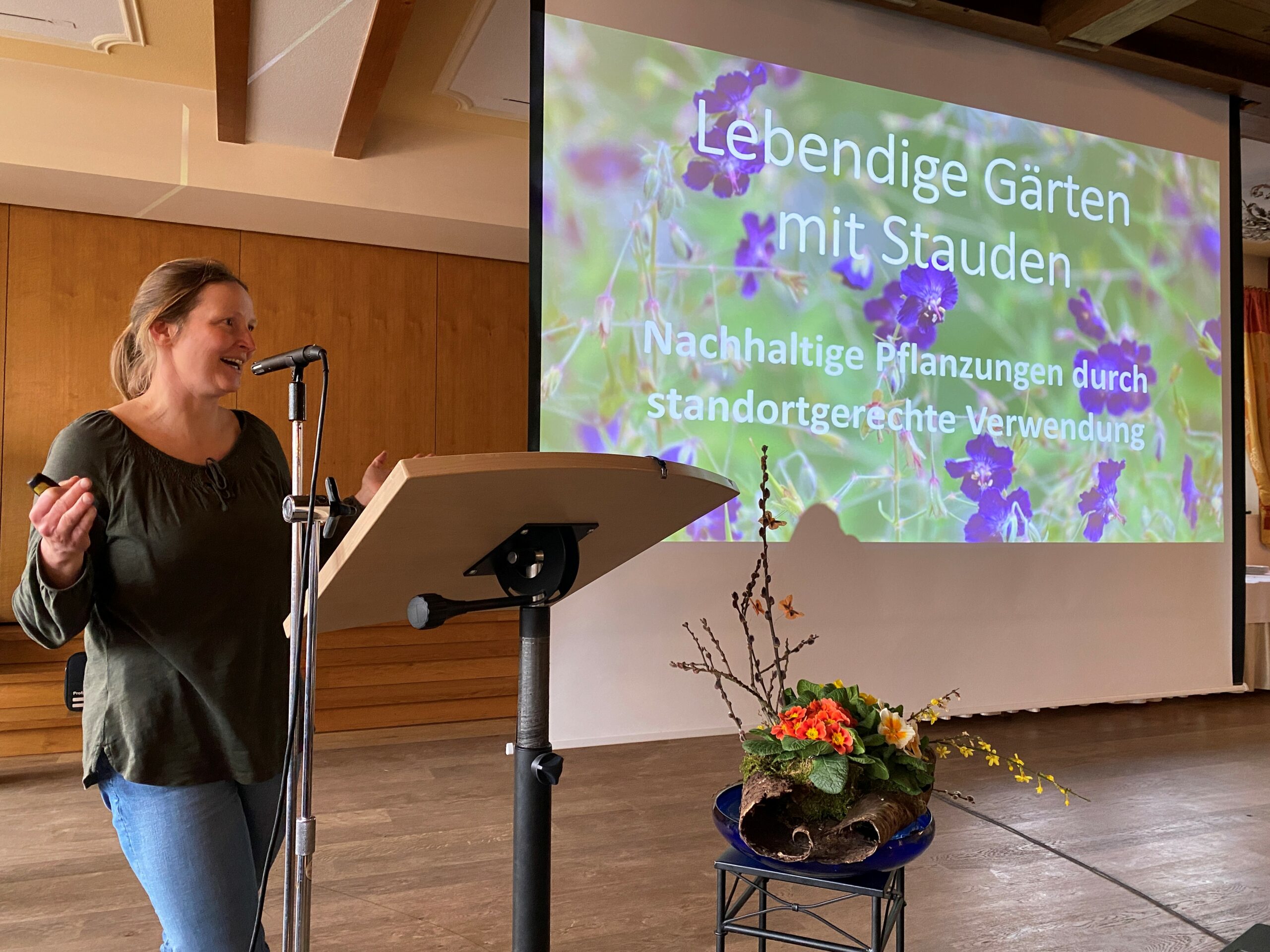 Susanne Müller von der Staudengärtnerei im Thal bei Soyen referierte über die standortgerechte Verwendung von Stauden. (Foto: Landratsamt Rosenheim)