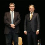 Foto: Bayerischer Landkreistag – Der Bayerische Ministerpräsident Dr. Markus Söder (links) gratulierte als einer der Ersten dem neu gewählten Präsidenten des Bayerischen Landkreistags, Landrat Thomas Karmasin, Fürstenfeldbruck.