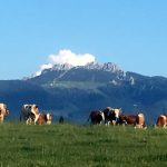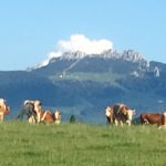 Immer wieder harmonisierend sind Bilder, die auf Chiemgauer Feldern mit weidenden Kühen und der sie umgebenden Landschaft entstehen – so wie diese aktuellen Aufnahmen in Oberreith, Gemeinde Frasdorf mit der Kampenwand im Hintergrund.