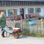 Fotos: Hötzelsperger/Privat – Isolde Weyerer bei den Gartenarbeiten sowie mit ihrem „Jägerhäusl“, das für vier Personen einen schmuckes Ferienhaus ist.