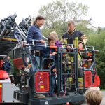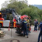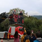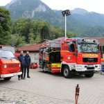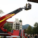 Der größte Renner war es für alle, einmal in den Korb der großen Drehleiter steigen zu dürfen und sich hoch über den Dächern des Dorfes die Welt aus 30 Metern Höhe zu betrachten. Auffällig viele Frauen mit Kindern standen in der langen Schlange an, um einen Überblick von oben gewinnen zu können. Geduldig und voller stolz präsentierten die Feuerwehrleute ihr neuestes und größtes „Feuerwehrauto“. Auch alle anderen Fahrzeuge der beiden Wehren von Aschau und Sachrang waren aufgefahren und sachkundig erklärten die Fahrer und Maschinisten die Einsatzmöglichkeiten und die Beladung der einzelnen Fahrzeuge. Bestaunt wurden dabei vor allem die Zweckmäßigkeit des Geräts und die penible Ordnung der Beladung der Fahrzeuge in den vielen Staukästen.