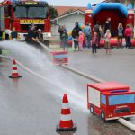 Unterhaltsam für die Kinder waren – neben der großen Drehleiter – auch das Rennen zweier Feuerwehrautos, angetrieben durch einen Feuerwehrschlauch und die große Hüpfburg der Feuerwehr. Die Erwachsenen fanden sich in der Fahrzeughalle ein, hier hatten die Feuerwehrfrauen für ein reichhaltiges Kuchenbüfett gesorgt und die Versorgung mit Speis und Trank übernahmen verschiedene Standl vor dem Feuerwehrhaus. Zur Unterhaltung der Gäste spielten die „Biche Briada“.