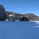 Dem Internet der Gemeinde Bernau entnehme ich, dass die Hintergschwendt-Loipe bei einer Schneehöhe von 30 cm gespurt ist. Es ist ein schöner Wintertag, also auf ins Winterwunderland am Fusse der Kampenwand. Die Loipe ist zwar nicht sehr lang, aber eine meiner Lieblingsloipen, weil man von Prien aus schnell dort ist und nie viel los ist.
