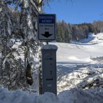Die Straße hinauf nach Hintergschwendt ist schneefrei und gleich nachdem Ortsschild sehe ich den ersten Langläufer. Die Spur sieht sehr gut aus, endet aber in der Hütte, in der das Spurgerät untergestellt ist. Ab hier ist nur noch eine wilde Spur. Ich parke am Wanderparkplatz Aigen, an dem jetzt Parkautomaten stehen. Sie sind aber außer Betrieb und ich spare mir 2 Euro.
