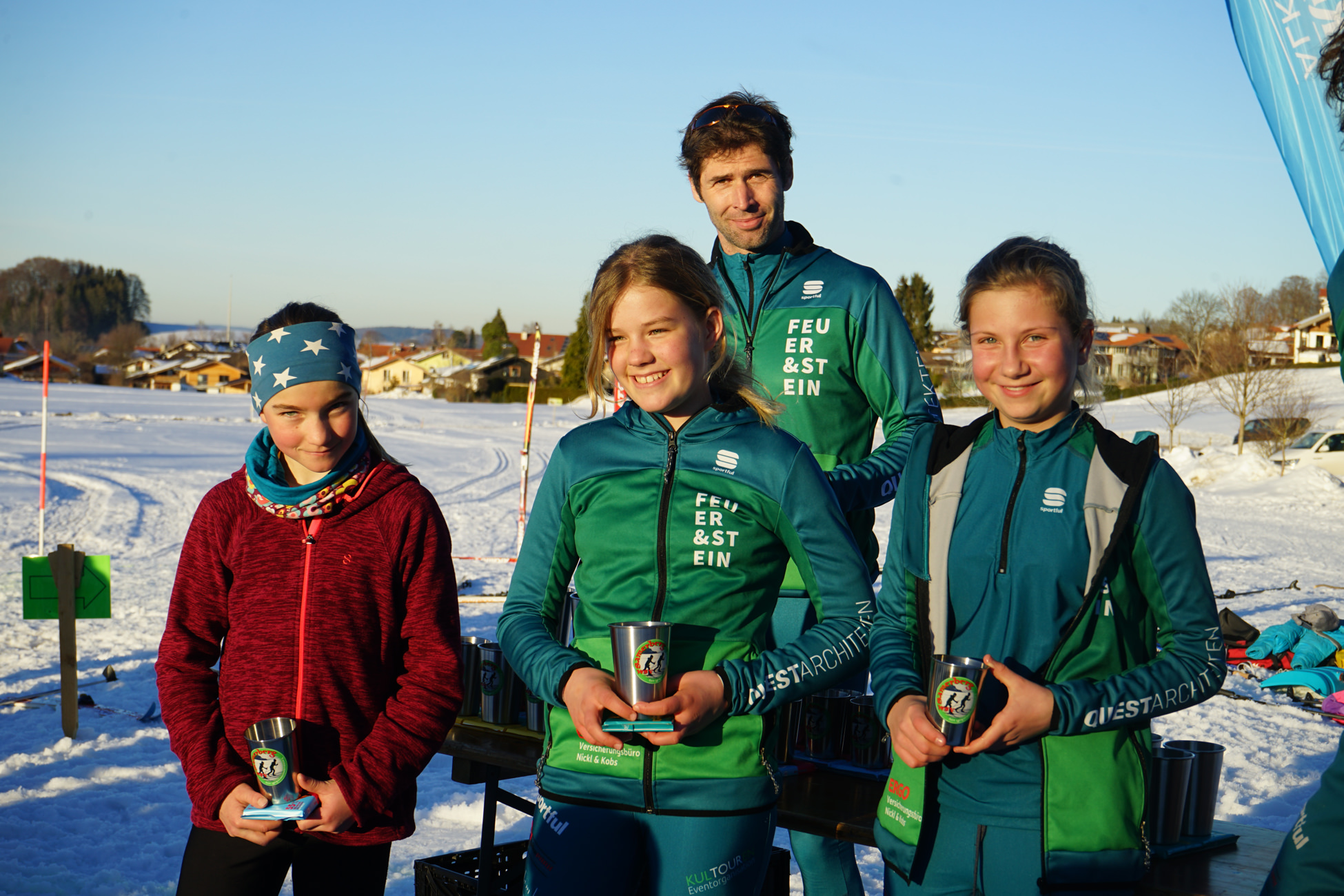 von rechts: die Siegerinnen des Jahrgangs 2006/2007 mit Vorstand Mathias Geissler: Katharina Pauler (3. Platz), Emmi Schreiber (1. Platz), Elisa Kittelberger (2. Platz)