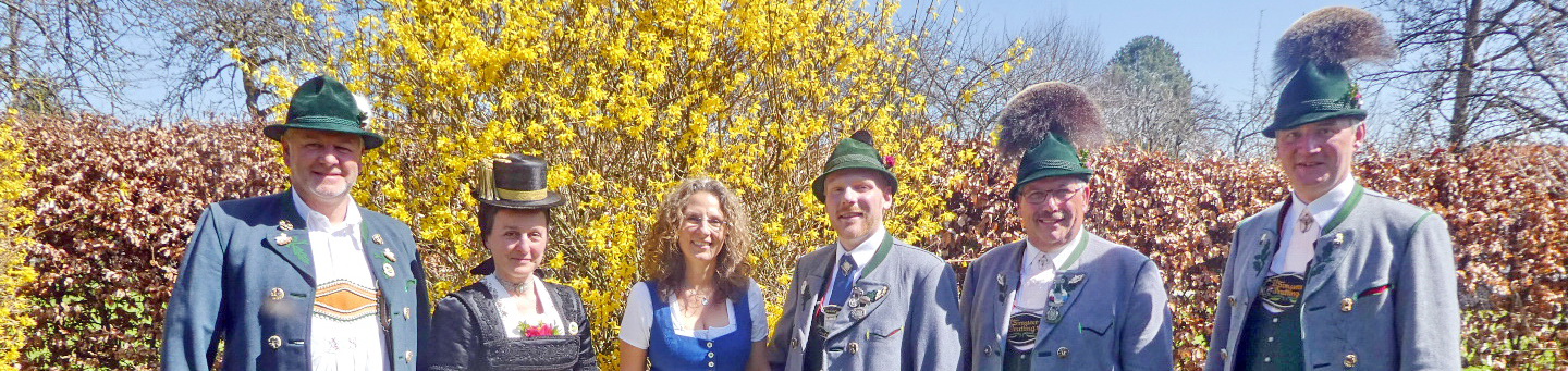 Foto/s: Hötzelsperger – Gemeinsam starten sie in den Trachtensommer 2018 von links: 2. Vorstand Andreas Schmid und 1. Vorständin Liesi Hilger aus Rottau, Geschäftsführerin Christina Pfaffinger vom Tourismusverband Chiemsee-Alpenland, Sepp Brem, Festleiter beim Trachtenverein Lauterbach, Vorstand Ludwig Redl und Festleiter Klaus Gschwendtner vom Trachtenverein Prutting.