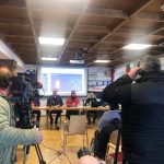 Foto: während der Pressekonferenz: Nik Burger und Thomas Lobensteiner, Bergwacht Bayern, Innenminister Herrmann, Klaus Stöttner, MdL, Wolfgang Spindler (Kurasi), Helmut Weidel (Bayerische Alpine Polizei)