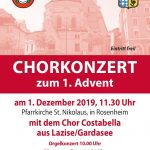 Am Sonntag, 01. Dezember 2019, 10.30 Uhr findet in der Pfarrkirche St. Nikolaus der Pfarrgottesdienst mit der italienischen Gemeinde statt. Der Chor Costabella begleitet ihn mit einigen Liedern.