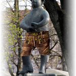 2015 – Rosenheim/Bayern (hö) – Gerade jetzt im Frühling werden die Lederhosen wieder aus ihrem Winterquartier hervorgeholt, denn nach alter Gepflogenheit wird bei Trachtlern und Trachtenliebhabern ab Ostermontag wieder die „Kurze“ getragen (der Gamsbart wird im übrigen nach der Fastenzeit auch wieder auf den Hut genommen). Lederhosen können auch gewaschen werden – so wie zum Beispiel die Original-Lederhose vom Volkssänger Weiß Ferdl . Manchmal ist die gute, alte Lederne auch schon in die Jahre gekommen, so dass eine „Verjüngungskur“ angeraten ist. Gut, dass es da seit sechs Jahren in Rosenheim den Lederhosenwascher Herbert Greiner gibt. Rund eintausend Lederhosen hat er inzwischen gewaschen. „Biologische Handwäsche“ nennt er sein Rezept, das er gar nicht mehr geheim hält, denn seine ausführliche, zweiseitige Waschanleitung bietet er für 2,50 Euro auf seiner Internetseite www.lederhosenwaschen.de an. Flüssige Schmierseife, sauberes Regenwasser und viel Arbeit und Geduld – mehr braucht eine Hirschlederhose (bzw. Gams- oder Elchlederhose) nicht, um wieder gereinigt unter die Leute gehen zu können. Unter den vielen und verschiedenen Lederhosen bekam Greiner jüngst ein ganz besonderes Stück. Ein Münchner Nachfahre des berühmten bayerischen Volksschauspielers Weiß Ferdl (geboren am 28. Juni 1883 in Altötting – gestorben am 19. Juni 1949 in München) bat um Prüfung des Zustandes von der Original-Lederhose vom Weiß Ferdl. Nach kurzem Dialog waren die Besitzer mit dem Waschen einverstanden und nunmehr sind die namentlich nicht genannt werden wollenden Inhaber wieder glücklich. Herbert Greiner seinerseits war wieder ein Stück mehr über seine Waschergebnisse stolz und dank heutiger Computer-Technik hat er dem Weiß-Ferdl-Denkmal vom Münchner Viktualienmarkt die frisch gewaschene Lederhose gleich angezogen. Von den Besitzern hat der Lederhosenwascher zum Dank auch noch eine historische Aufnahme mit dem Lederhosen tragenden Weiß Ferdl bekommen.