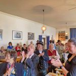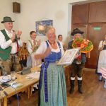 Die Initiatoren freuten sich diebisch, dass es ihnen gelungen ist, dies geheim zu halten. Natürlich weiß die Geehrte, dass diese Lehrer-Vogl-Medaille schon was Bsonders ist und die Freude darüber war ihr sichtlich anzusehen. Aber diese Ehrung kommt nicht von ungefähr. Blank jeder Kenntnis um Tracht und Brauchtum lernte sie während ihrer Ausbildung zur Verwaltungsbeamtin in der Bayerischen Verwaltungsschule Holzhausen am Ammersee ihren Mann Gerhard kennen, ein pränataler Trachtler, schon mit der Lederhose auf die Welt gekommen. „Wenns was werden soll mit uns, dann muasst mitmacha“ war seine Ansage. Und sie machte mit! Schnell lernte sie das Trachtlerleben mit all seinen Facetten lieben und war über Jahrzehnte ihrem Mann Gerhard eine zuverlässige Stütze. Aber sie ergriff selbst die Initiative, machte sich in ihrem Lechhauser Verein nützlich und stieg 1980 auch in die Gauarbeit ein. Zuerst als Dirndlvertreterin u. a. mit der Abhaltung von diversen Nähkursen, der Einführung der Miedernäherei im Gau und immer im Blick das saubere Auftreten der Deandl, dann entdeckte sie ihre Lust am Schreiben und übernahm das Amt des Pressewartes. In diese Zeit fiel auch die Neuaufnahme der Arbeiten rund um eine – schon immer gewünschte – Gauchronik. Unterstützt von Alexandra Oppenländer, Martin Kramer, Marianne Sandmeier und Konrad Vogel war es nach zweijähriger intensiver Arbeit so weit: Die Gauchronik konnte 1998 präsentiert werden.