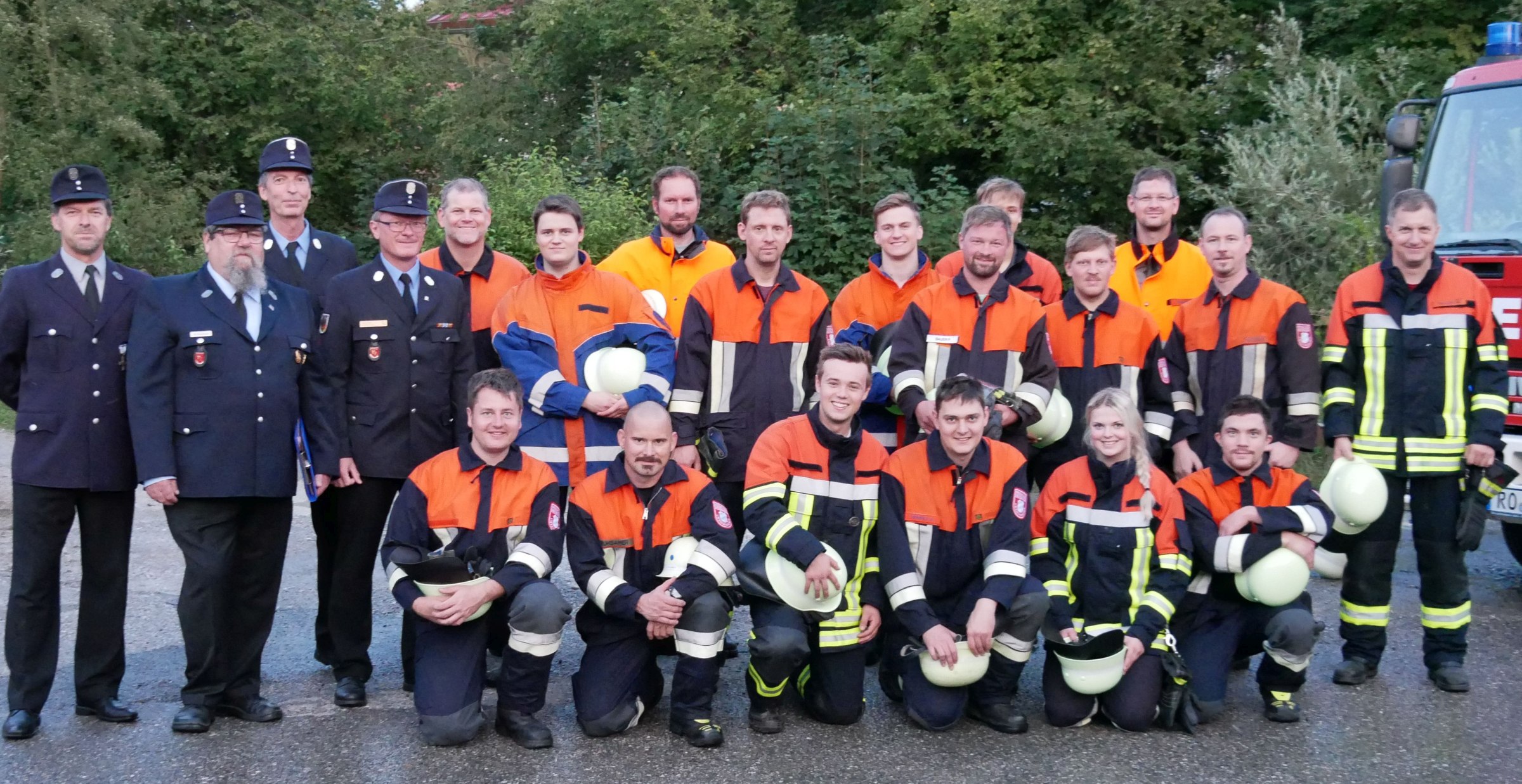 Die erfolgreichen Umrathshauser Feuerwehrleute mit Feuerwehrvorstand Georg Noichl (links), den drei Schiedsrichtern Reiner Sonnenhauser, Fach-KBM Christian Hof, KBM Stefan Pfliegl und Kommandant Martin Dialler (rechts)